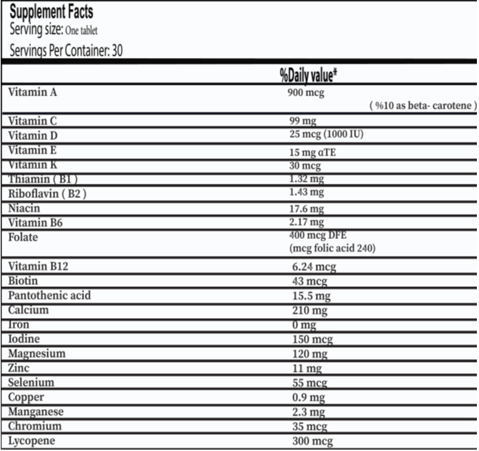 فيتامينات متعددة مع الجرعة المثالية الموصى بها من فيتامين د للبالغين.